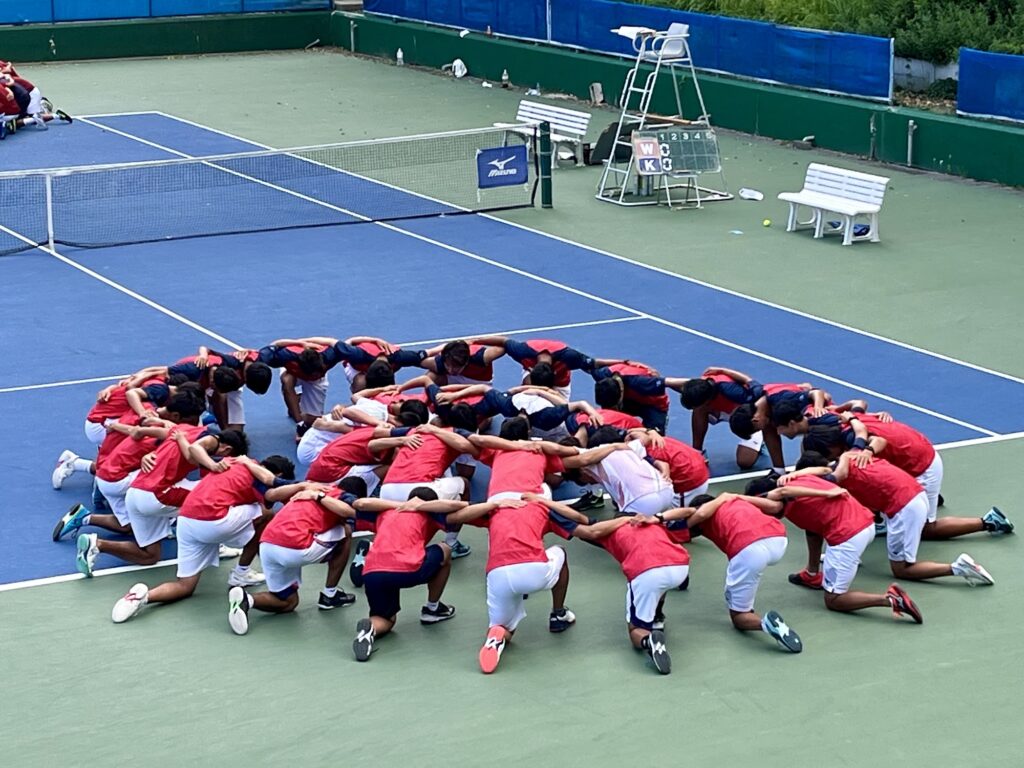 私達も慶應庭球部の一員として、大学生に負けじと応援しました。結果は慶應義塾大学から7-2と勝利しましたが、どの試合も、一瞬たりとも見逃せない非常に白熱した試合となりました。